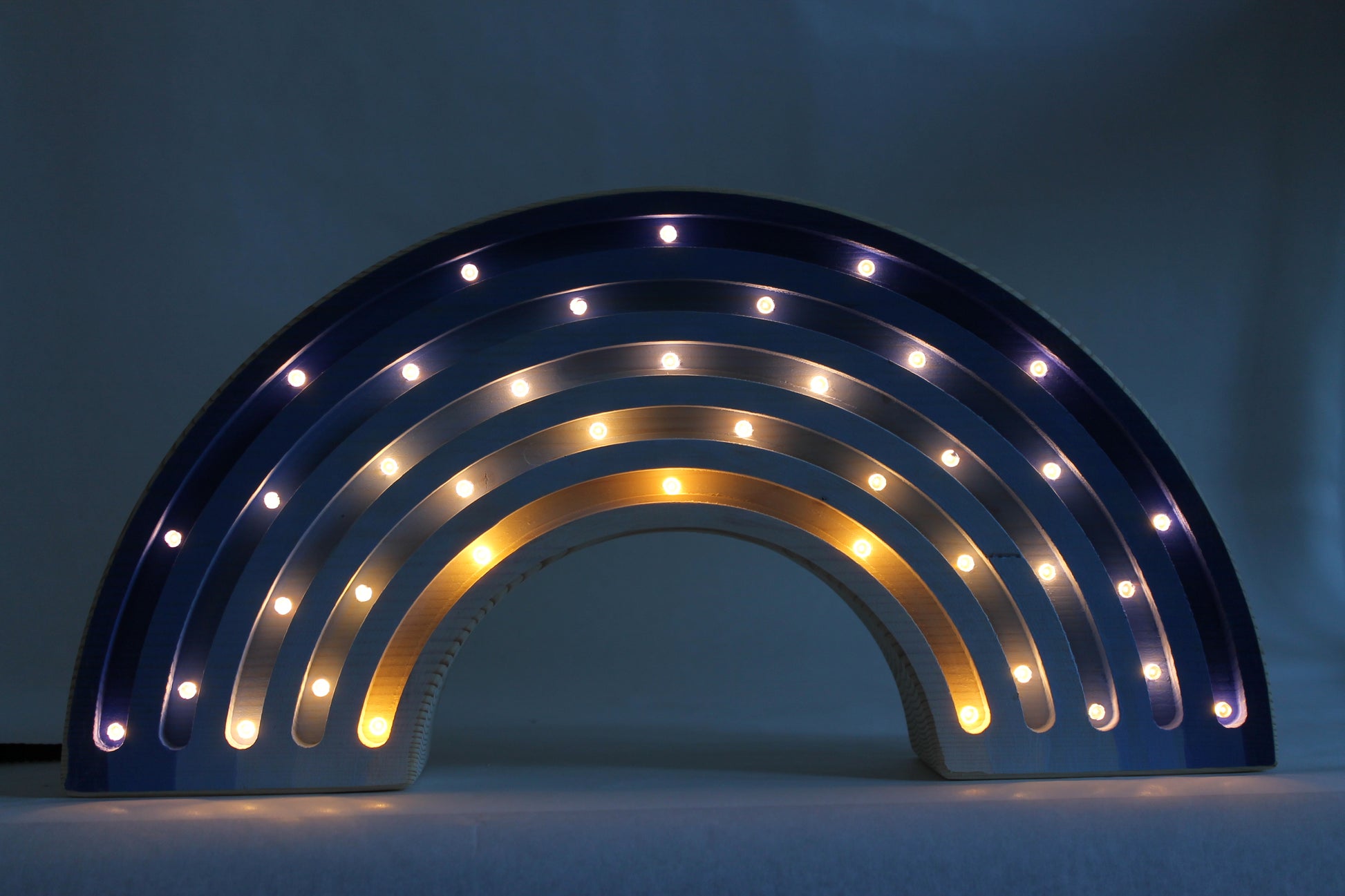 De speelse regenboogvorm en de warme gloed maken deze lamp perfect voor kinderkamers, woonkamers of als opvallend accent in je interieur. Elk exemplaar is met liefde en zorg met de hand gemaakt, waardoor je altijd een uniek stuk in huis haalt.